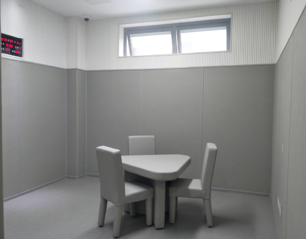 星美建材生產(chǎn)的防撞阻燃吸音材料專業(yè)為派出所審訊室、公安局辦案區(qū)、紀(jì)檢委談話室、詢問室、檢察院訊問室、看守所關(guān)押室、交警大隊(duì)訊問室、特審室、信息采集室、紀(jì)委審查室、禁毒支隊(duì)、拘留所等執(zhí)法部門量身打造集防撞、阻燃、吸音為一體的防自殘、防磕碰的保護(hù)性墻面,能很好保護(hù)嫌疑人出現(xiàn)自殘、撞墻自殺等行為。